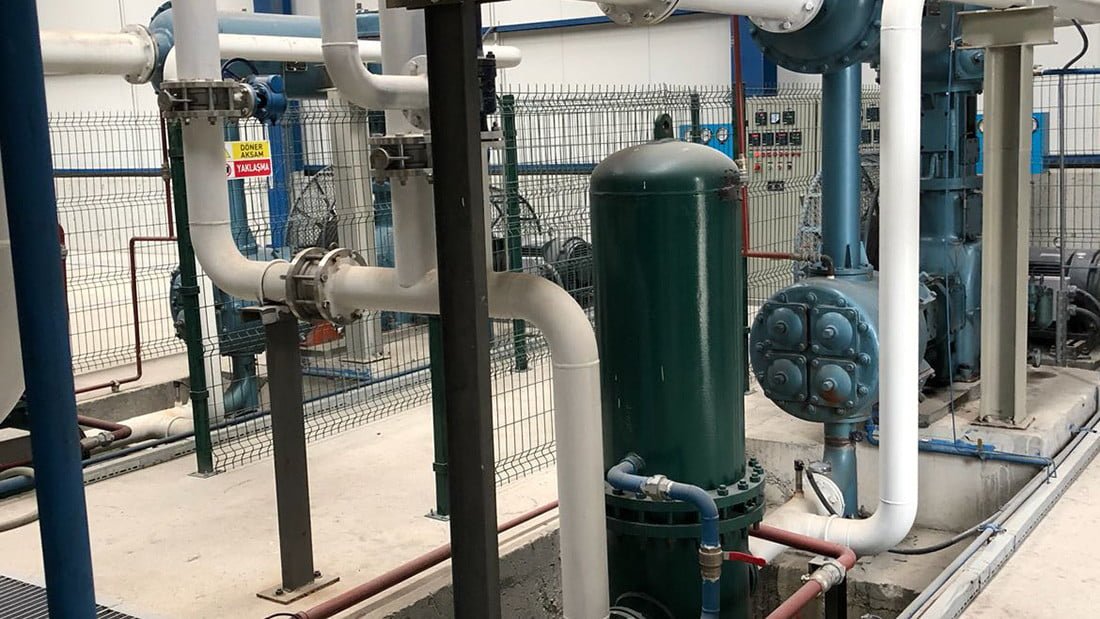 Кислородные установки VPSA, которые являются наиболее эффективным методом производства кислорода, создаются с использованием оборудования, пригодного для работы в режиме 24/7. Воздух низкого давления, производимый воздуходувкой, сначала охлаждается и осушается. В резервуары VPSA направляется относительно сухой воздух, температура которого падает до средних значений. Воздух, который направляется снизу вверх по слоистой структуре в резервуарах, сначала проходит через первые молекулы, отделенные от молекул CO2 и влаги, и здесь становится полностью сухим. Во втором слое молекулы кислорода разделяются, а молекулы азота удерживаются за счет использования разницы в молекулярной структуре с помощью высокоэффективных и долговечных молекул цеолита. В верхнем и последнем слое поток регулируется, и теперь образуется кислородный газ. Для каждой молекулы в резервуарах существует определенное время насыщения, по завершении этого периода свежий воздух нагнетателя направляется в другой резервуар. С другой стороны, резервуары, заполненные азотом и влагой, вступают в процесс регенерации с помощью вакуумного нагнетателя, а отработанные газы и влага удаляются в воздух. Другими словами, два резервуара работают друг с другом в тандеме, и обеспечивается непрерывный поток газообразного кислорода. Произведенный газообразный кислород хранится в резервуаре, он направляется в кислородный компрессор в соответствии с потребностями приложения и подается на предприятие путем увеличения требуемого давления.